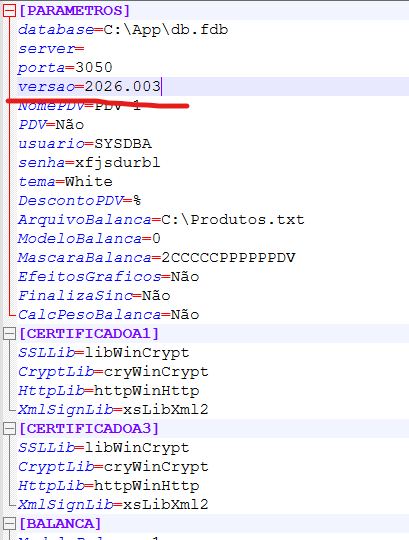 Ajuste o arquivo C:\App\App.ini o parâmetro versao=2026.003 com uma ou duas versões anteriores, neste exemplo ficaria versao=2026.001