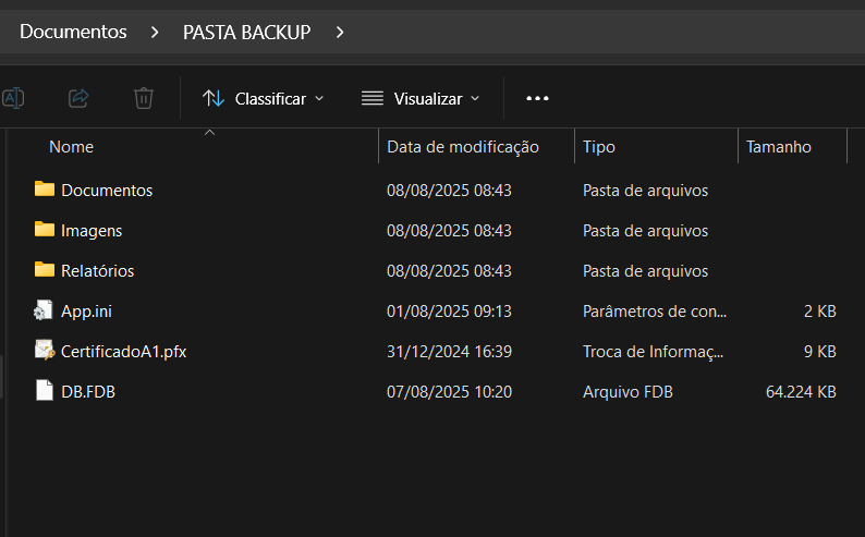 Não salve o backup dentro da mesma pasta do sistema, pois ela será excluída na desinstalação.