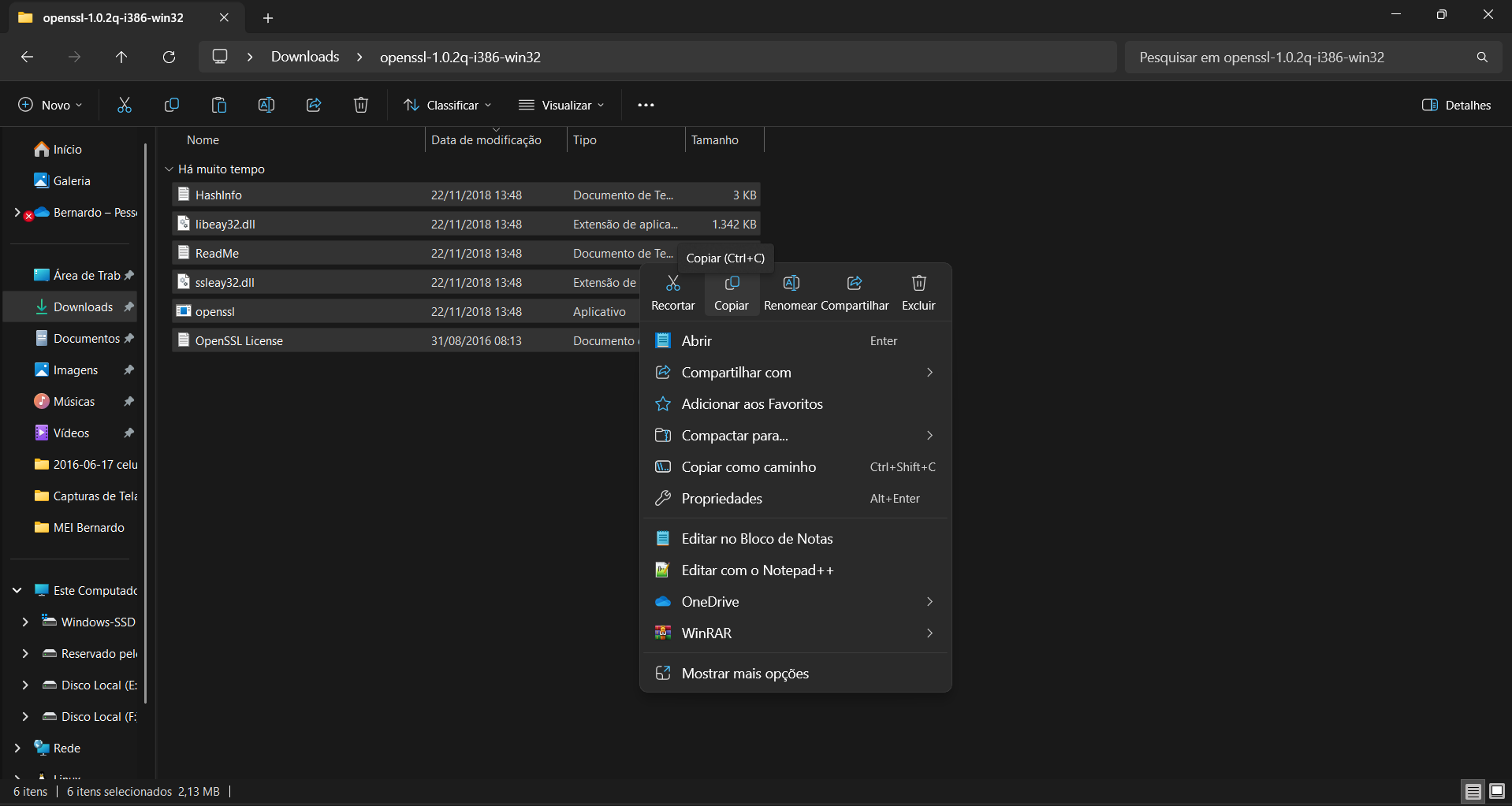 Clique com o direito → Extrair tudo… (Windows) ou WinRar -> Extrair Para "openssl..."