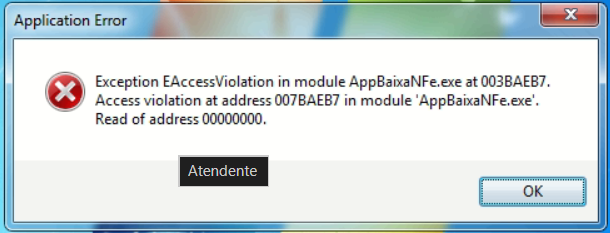 Erro Exception EAccessViolation in module AppBaixaNFe.exe at 003BAEB7 - 007BAEB7