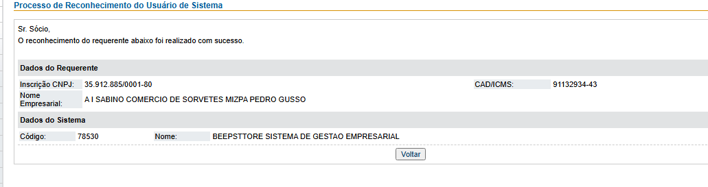 Para consultar o cliente, faça login com o CNPJ da BEEP, acesse UPD > Sistema > Reconhecimento de Usuário > Informe o CNPJ da BEEP 09.504.137/0001-58