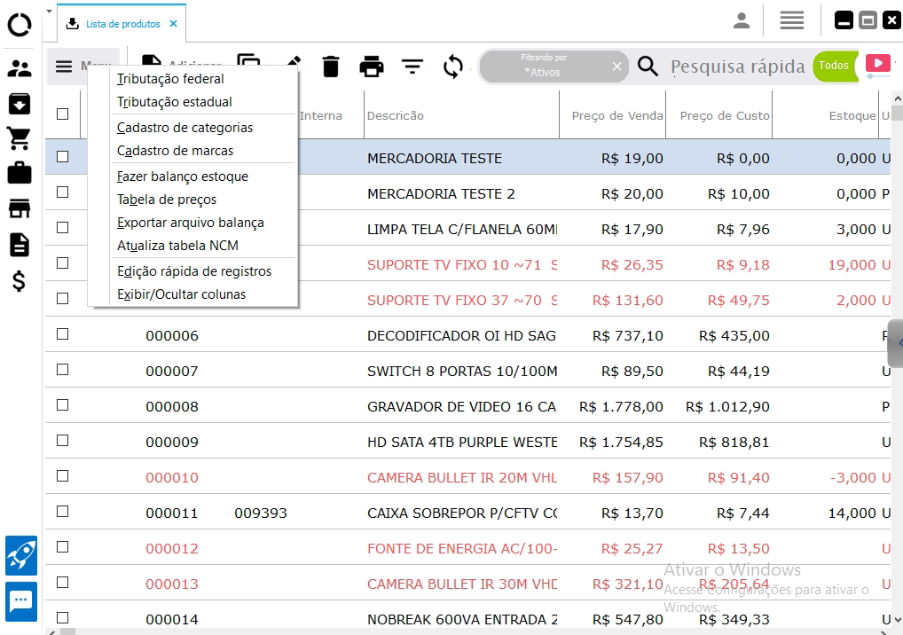 Acesse o módulo Estoque > Menu > Atualizar tabela NCM