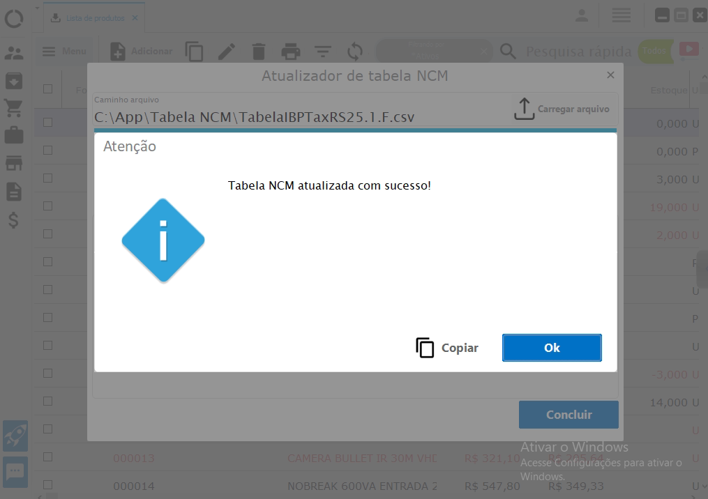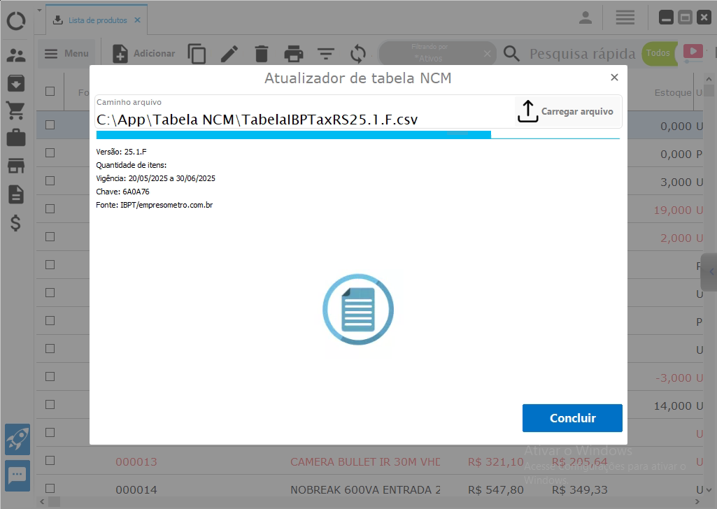 Atualizar tabela NCM