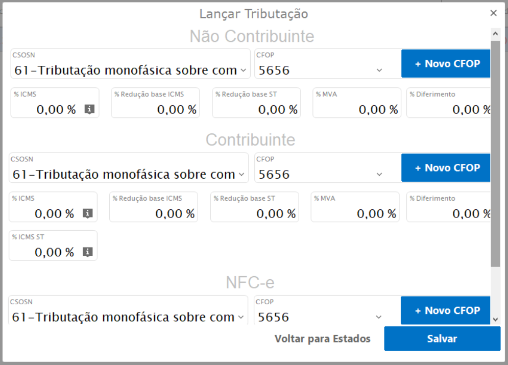 Na tributação informar CST 61