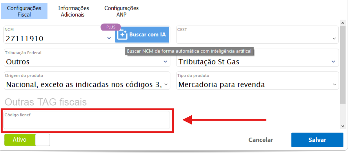 Verificar com a contabilidade se é necessário acrescentar a informação de "Código Benef" no produto.