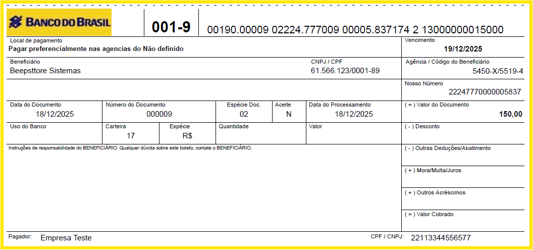 Boletos Banco do Brasil - BB