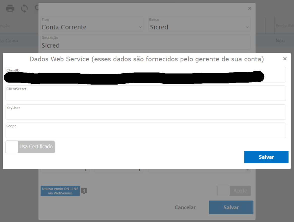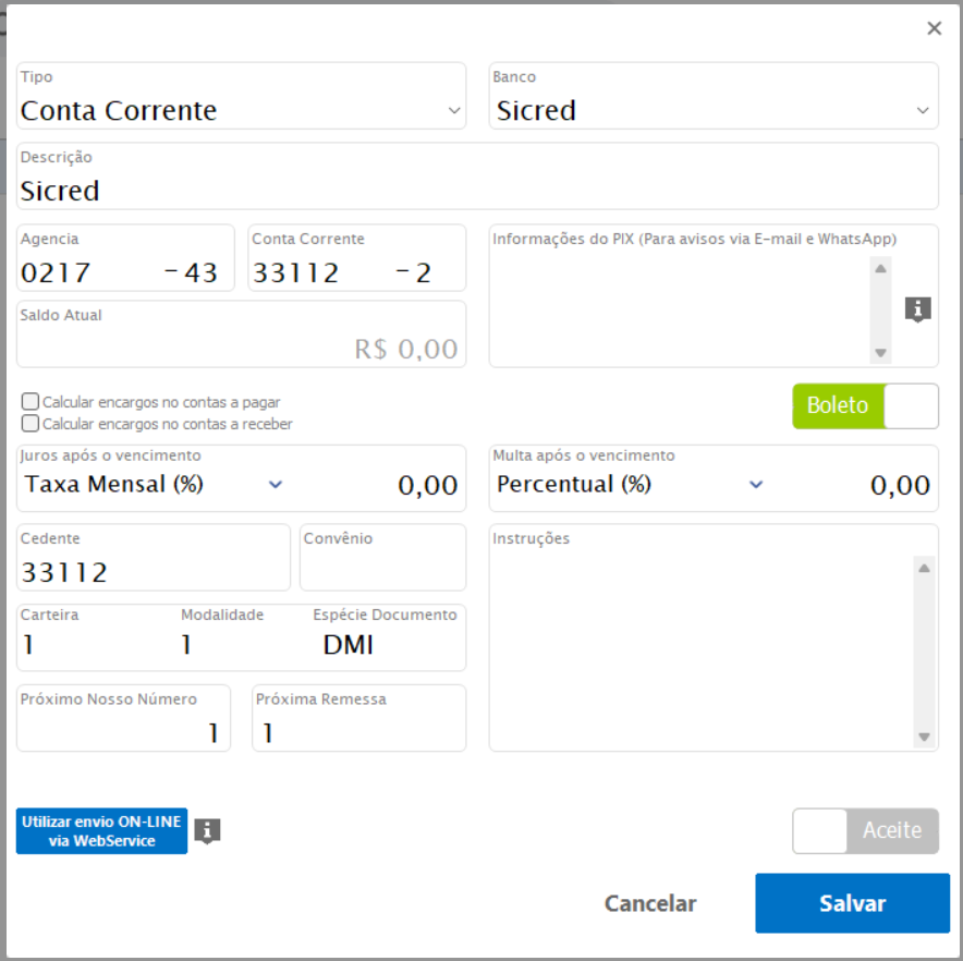 - Nosso número: (Se acaso o cliente já esteja emitindo boletos)