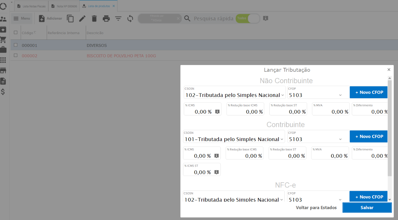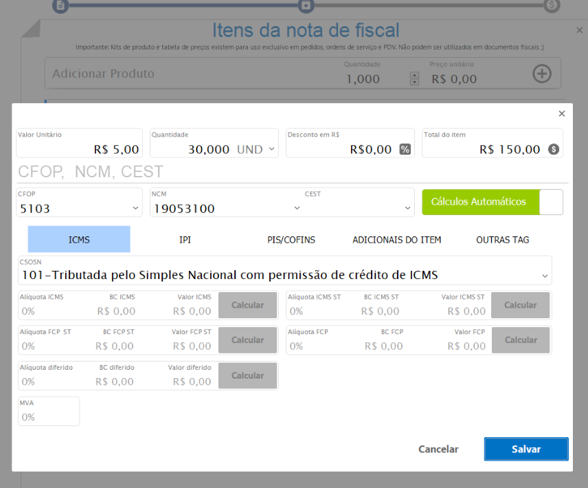 Quando for necessário emitir uma nota fiscal para cliente do lucro real com permissão de crédito de ICMS, é necessário fazer algumas parametrizações no sistema.