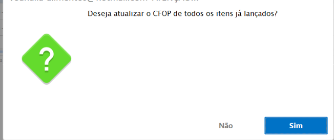 Após alterar o CFOP informe SIM para substituir o CFOP para todos itens lançados se aparecer a mensagem