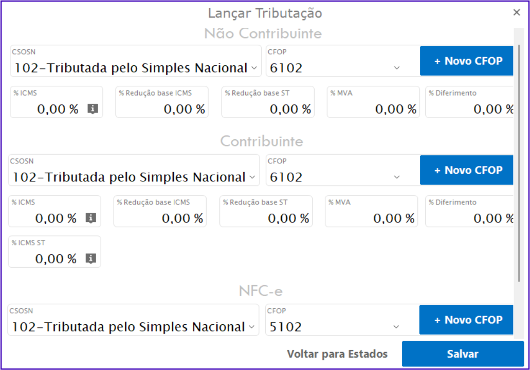 Essa regra define que, quando o produto estiver configurado com essa tributação, o sistema irá ajustar automaticamente o CFOP de acordo com o tipo de operação.