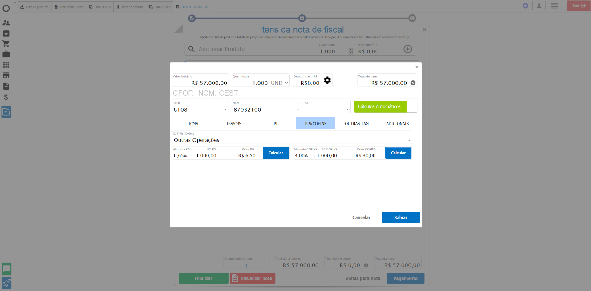 Importante: Estes valores devem ser destacados nos campos específicos de PIS e COFINS da NF-e, utilizando o CST correspondente (geralmente CST 01 ou 49, dependendo da orientação contábil para operações sobre a margem).