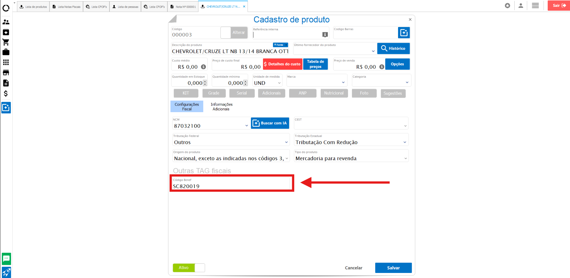 No cadastro do veículo dentro do sistema, é necessário informar o código Codif Bef. Este código é essencial para a correta identificação do veículo e conformidade com as regras de benefício fiscal ou controle específico de revenda.