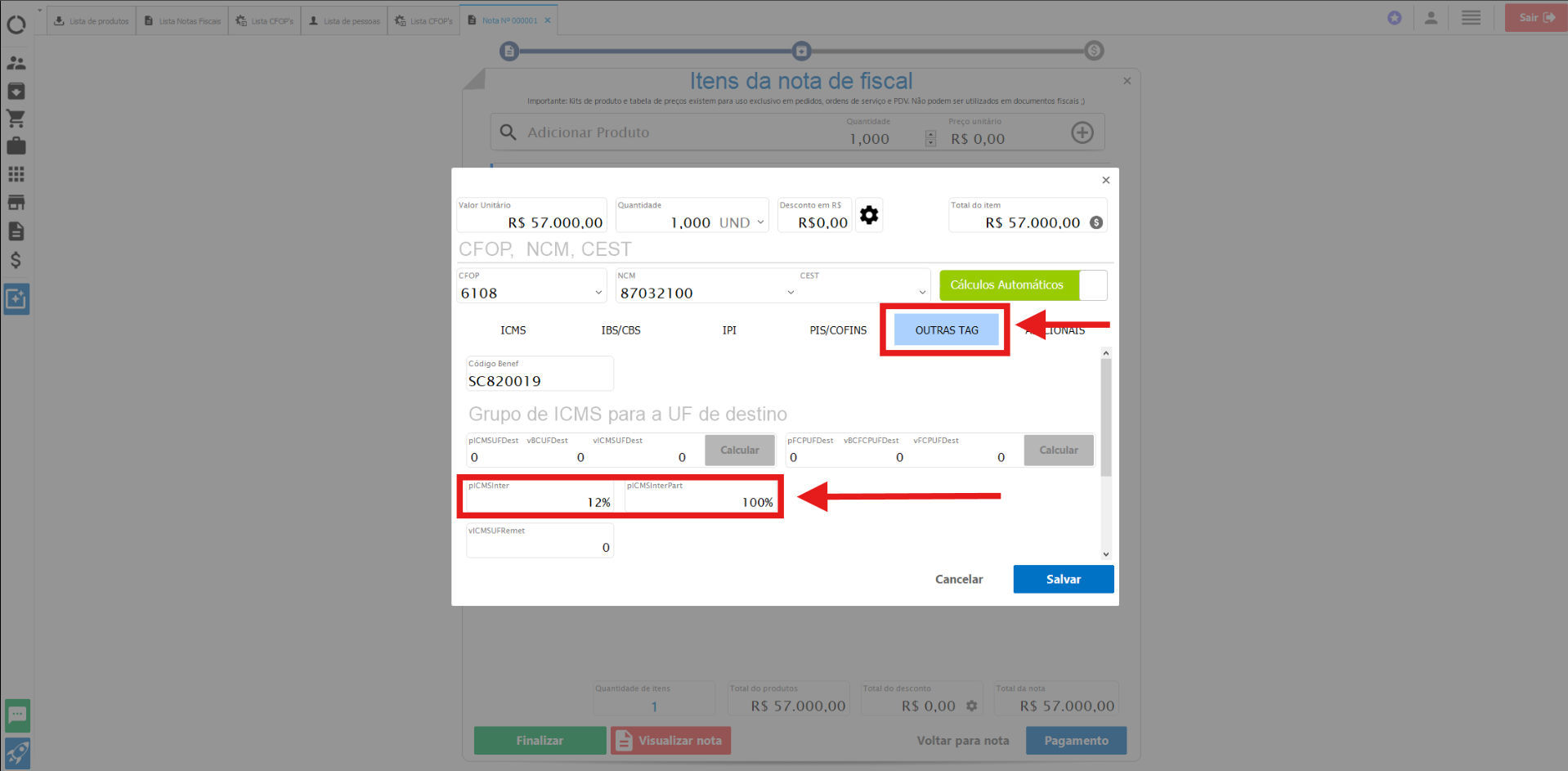 1. Configuração do ICMS e DIFAL (Grupo ICMSUFDest)