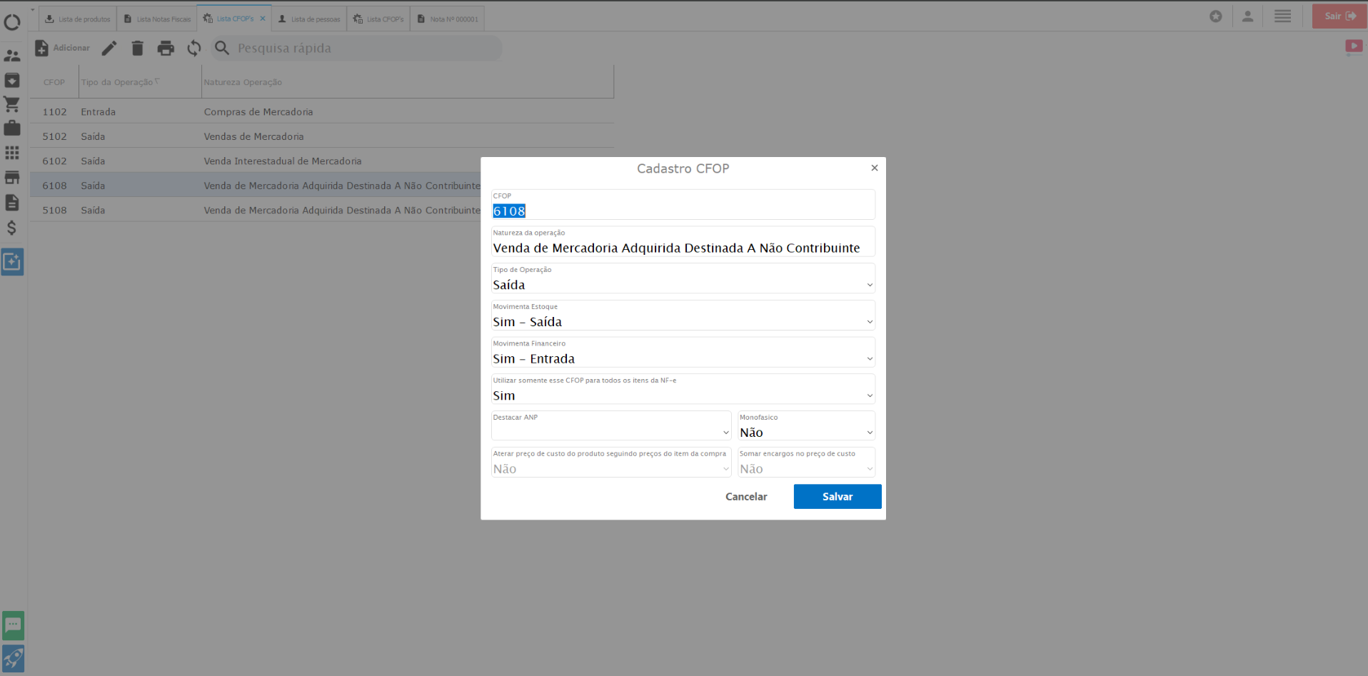 CFOP: 6108 (Venda de mercadoria para não contribuinte em outro estado).