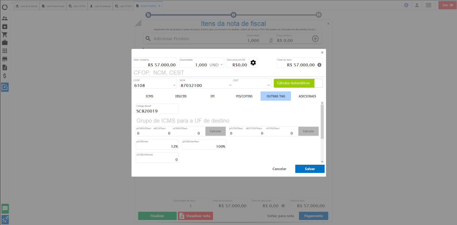 Este tutorial orienta sobre a emissão de NF-e na venda de veículos usados por empresas do regime de Lucro Presumido, especificamente para consumidores finais localizados em outros estados. Ele aborda a configuração do ICMS (DIFAL), o cálculo diferenciado de PIS/COFINS sobre a margem de lucro e o preenchimento do código Codif Bef.