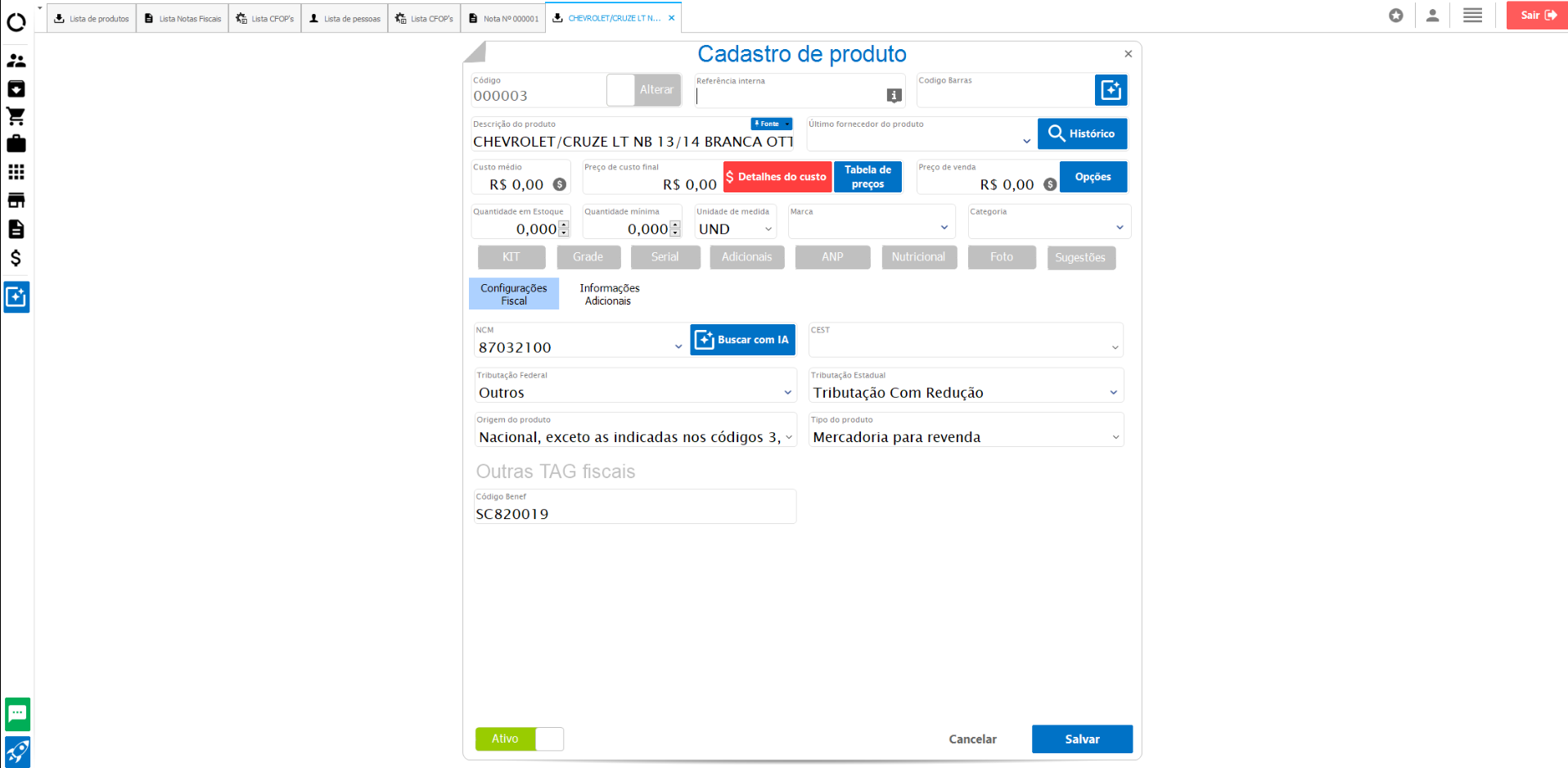 No cadastro do veículo dentro do sistema, é necessário informar o código Codif Bef. Este código é essencial para a correta identificação do veículo e conformidade com as regras de benefício fiscal ou controle específico de revenda.