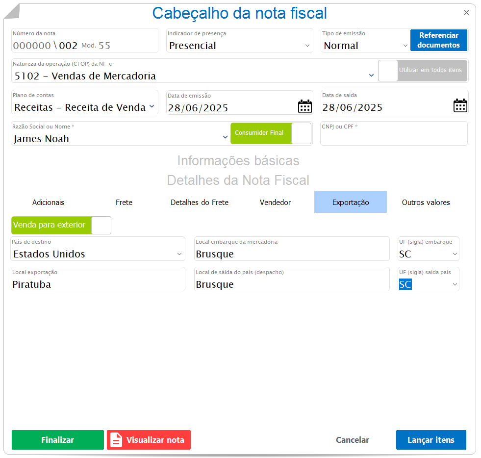 Seguindo esses passos, sua venda para o exterior estará corretamente configurada e pronta para emissão da NF-e conforme exigências legais.