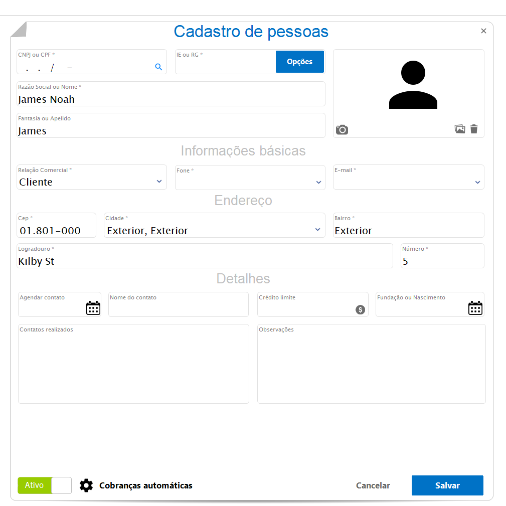 🧾 1. Cadastro do Cliente (Exterior)