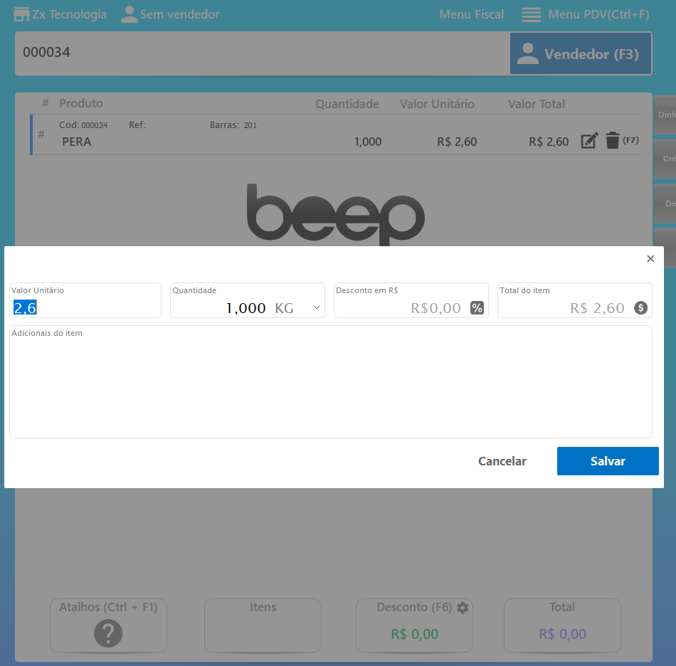 No PDV quando informado o item que é pesado a seguinte tela irá abrir
