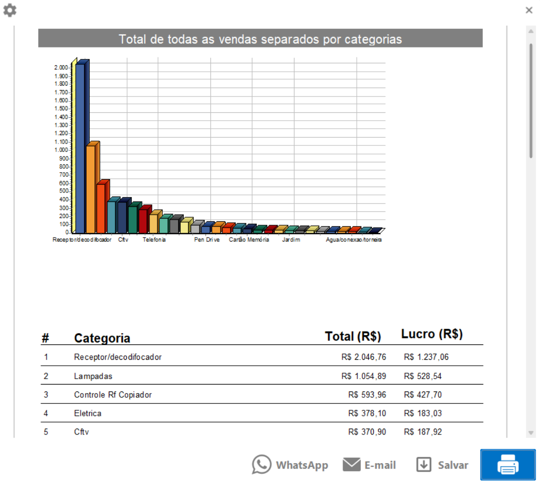 VENDAS POR CATEGORIAS COM LUCROS - Também é possível selecionar o período