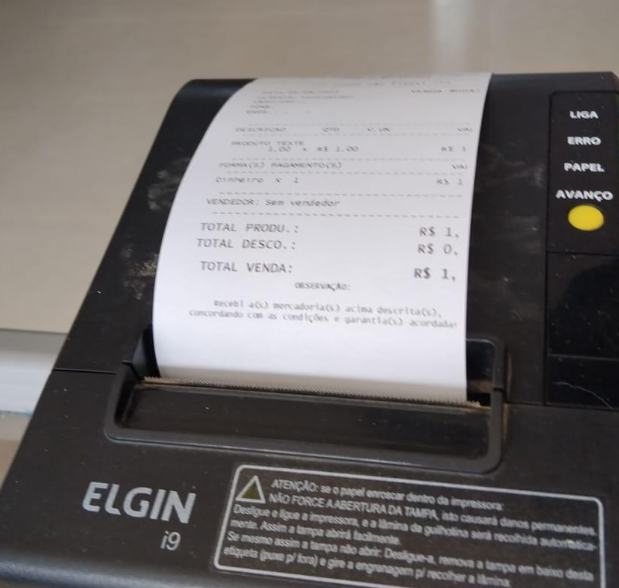 Em algumas impressoras alguns comprovantes ficam cortados na hora de imprimir, este é um exemplo de um Cupom não fiscal de controle interno.