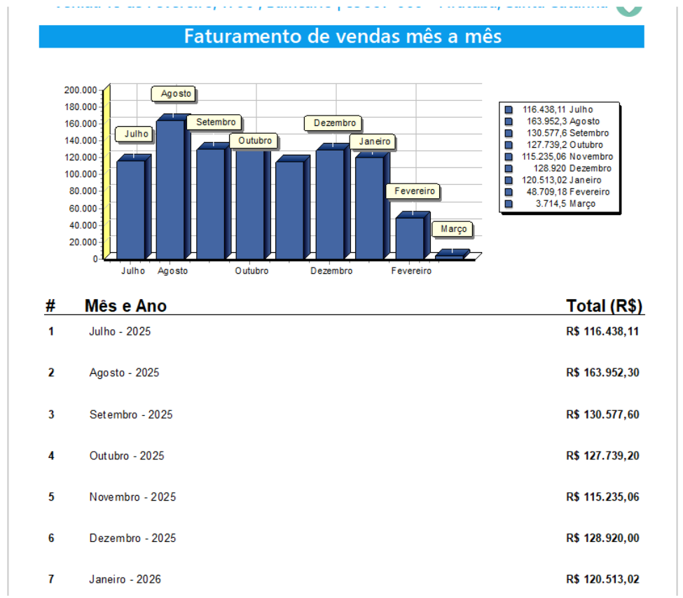 Relatório de Faturamento Mensal (Últimos 13 Meses) - Sistema BEEP